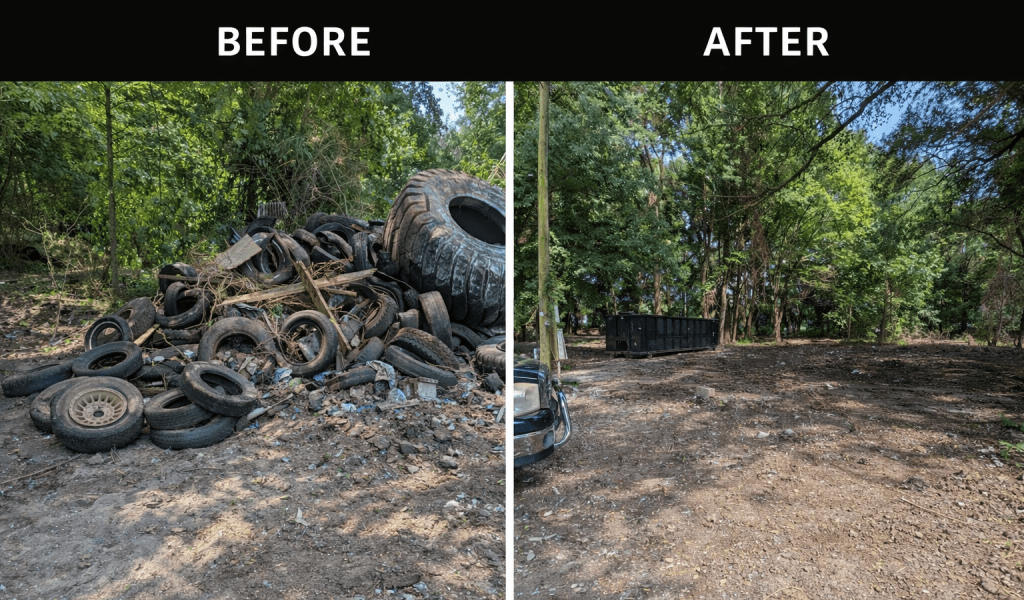 - Removed 21 tons of trash from the property (including 11 tons of tires)